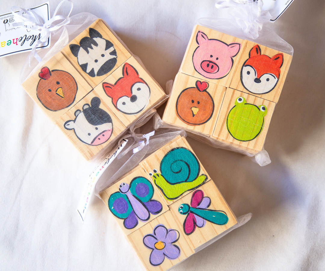 • Keep your little ones minds going with a hanpainted wooden memory game!