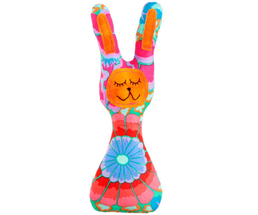 • 100% handmade fabric rattles with hand embroidered face. Plastic rattle insert and polyester filing. Approx. 15cm H excluding ears.