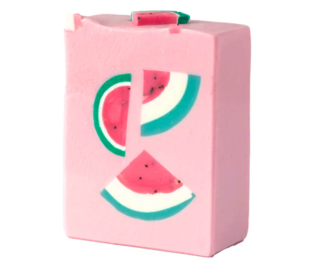 soap, enriched with nourishing olive oil and coconut oil. Pamper your skin with the gentle exfoliation provided by poppy seeds, revealing a silky smooth texture. Delight in the sight of real watermelon slices embedded within, while the uplifting top notes of grapefruit, citron, watermelon, and lime transport you to a tropical paradise.