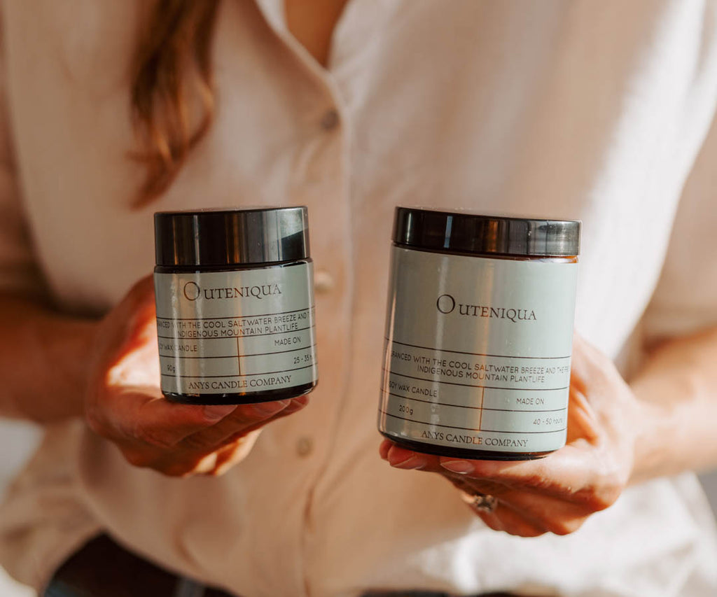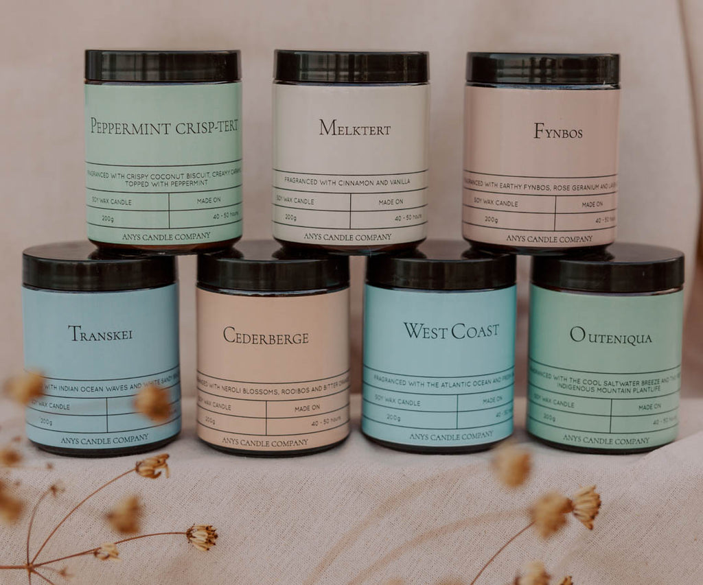 Our candles are hand poured in small batches here in our home candle making studio in St Helena Bay, South Africa.