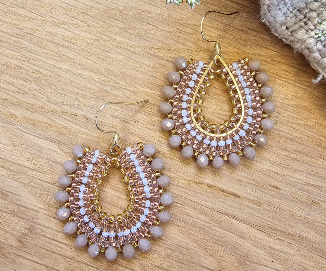 • These nude beaded earrings offer a soft, neutral elegance with their delicate & understated design.