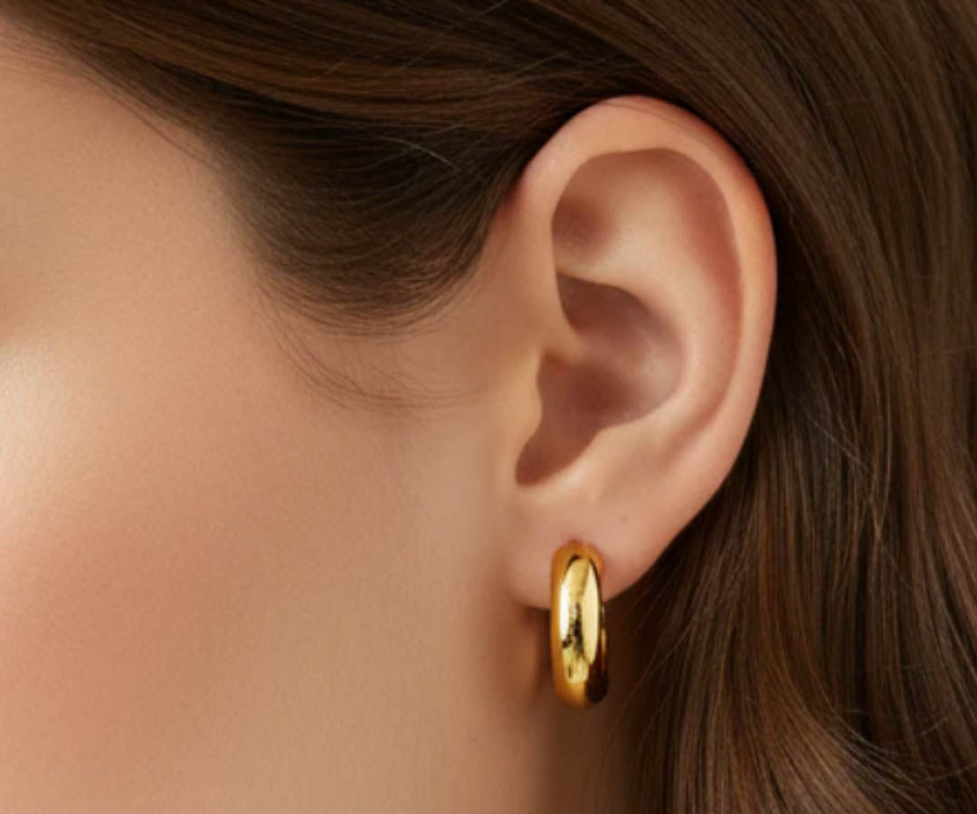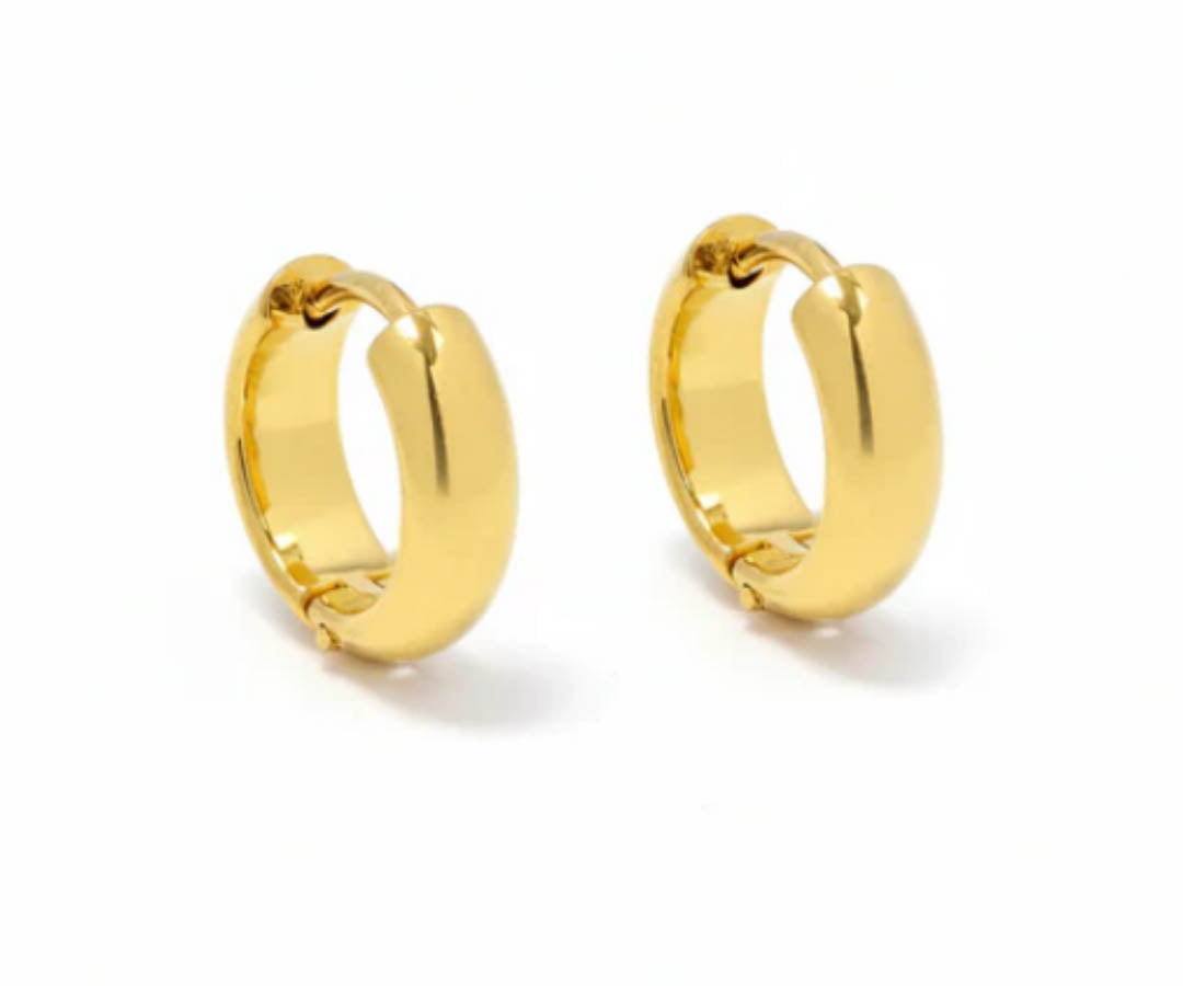 • Cassie - elegant domed hoop gold earrings that bring modern sophistication to any look. Featuring a distinctive domed silhouette and secure click-in clasp, these hoops offer both style and comfort for all-day wear.