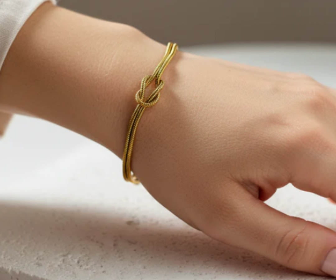 • The Infinity knot is a beautiful minimal gold bracelet that's perfect for everyday wear. The elegant infinity symbol carries deep meaning of endless love, friendship, and possibilities, making this a thoughtful gift for someone special or a meaningful addition to your own collection.