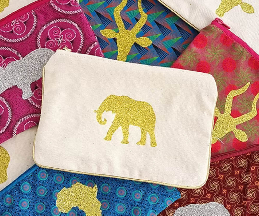• Shwe Shwe Pocket with glitter motif transfer. Various designs - Africa, Rhino, Kudu, Elephant, Ostrich. A random choice will be sent depending on stock availablity.