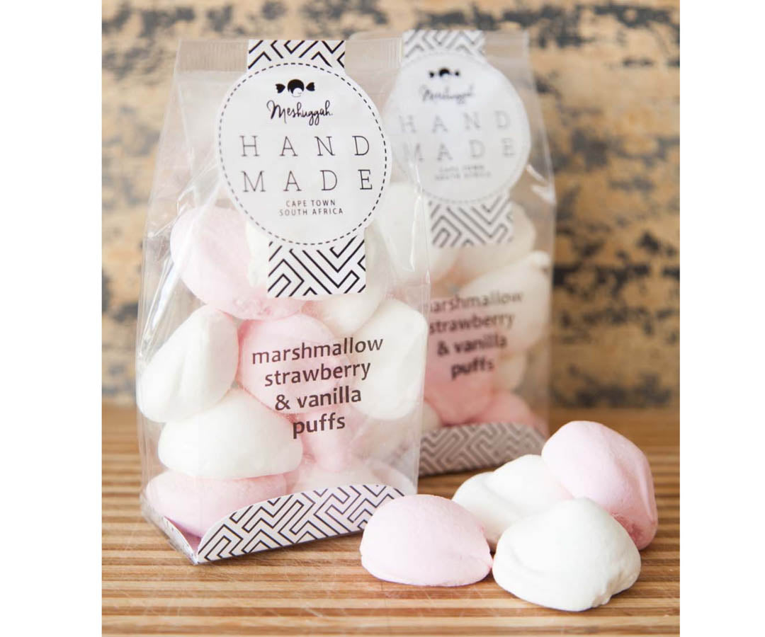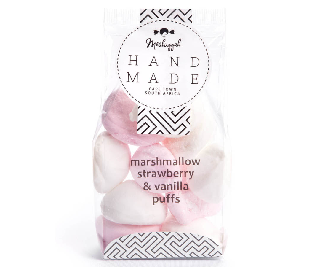 • Soft Strawberry & Vanilla Marshmallow Puffs. Handmade & Hand piped to ensure artisanal perfection.