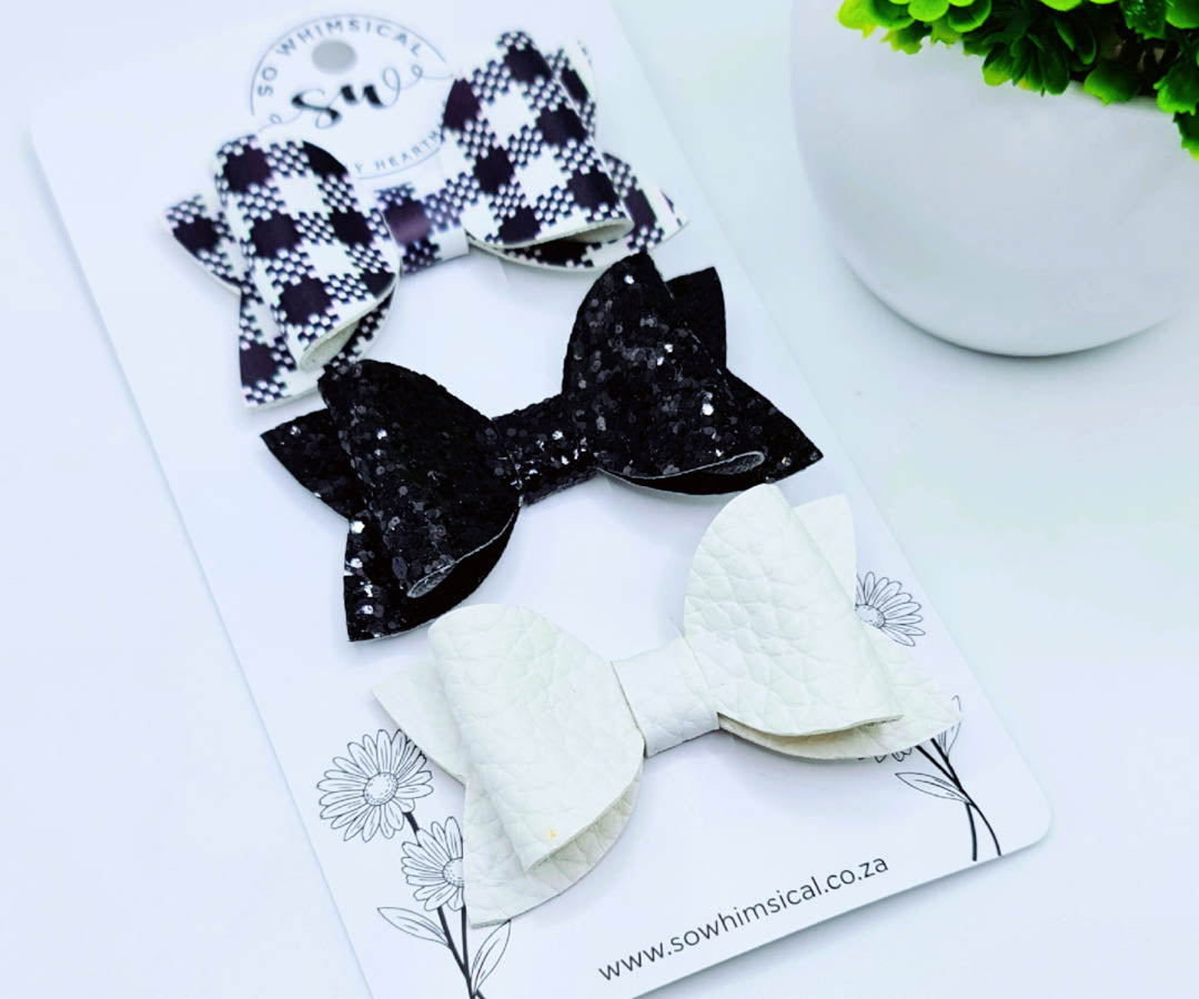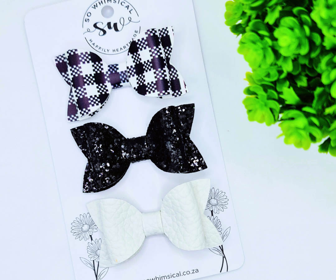 • Each bow is carefully handcrafted. I take great pride in creating each and every bow to perfection, because these are handmade items, they may differ slightly from one another. Each bow also has an alligator clip attached to the back. Please be vigilant of hair accessories with babies and children and never leave them in while sleeping. All our hair accessories are handmade with high quality fabric and vegan leather.