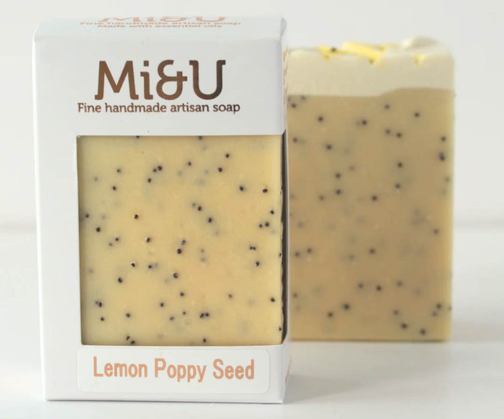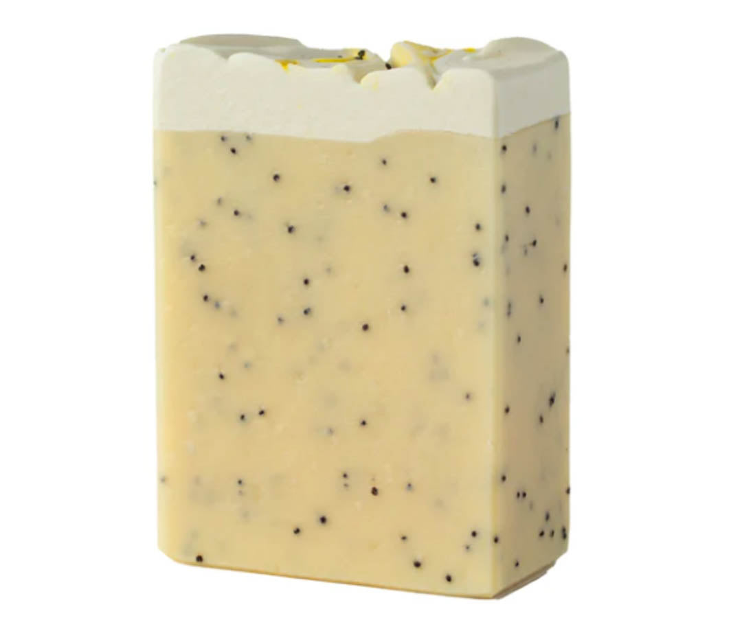 • Brighten your skin with our Lemon Poppy seed soap, crafted with folded