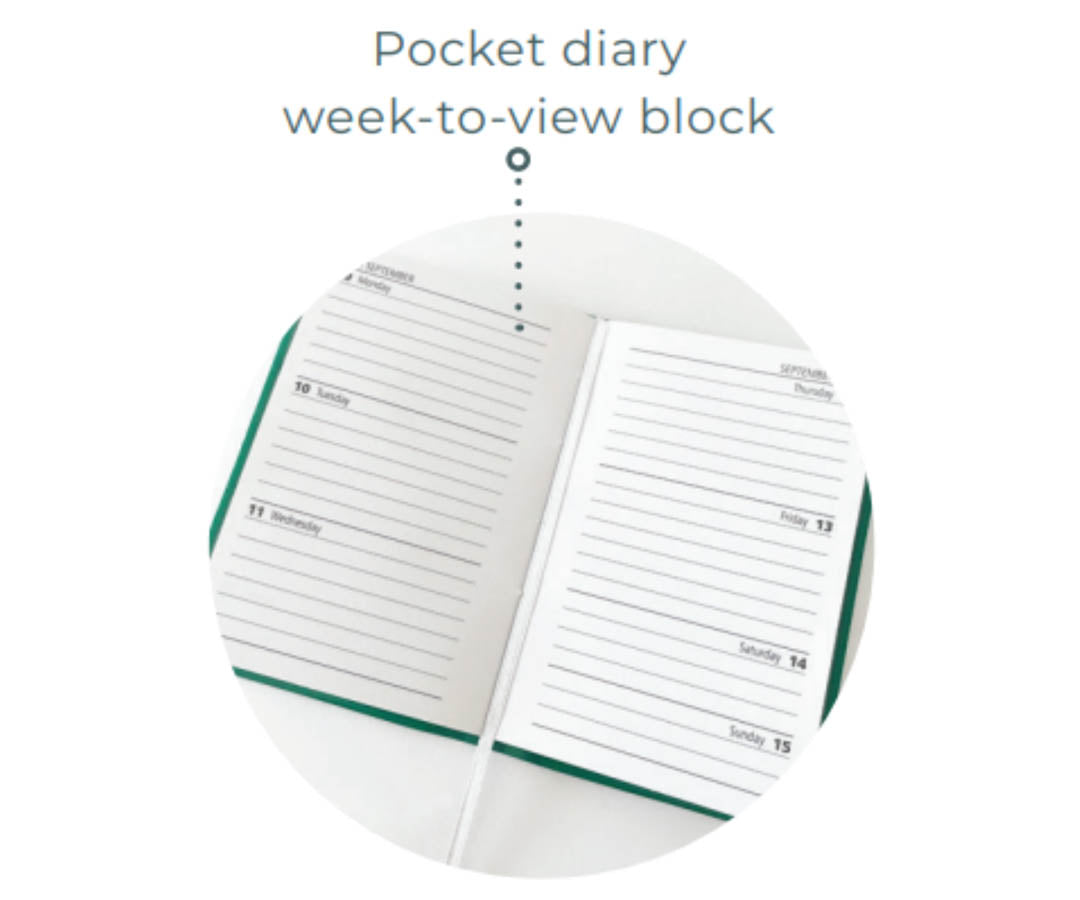 • Our week-to-view (WTV) is a popular choice for those who are busy but perhaps don't need a full page for every day. Compact and robust, great to take with you wherever you go. The week-to-view format makes it ideal to manage your week ahead, with space for daily entries.