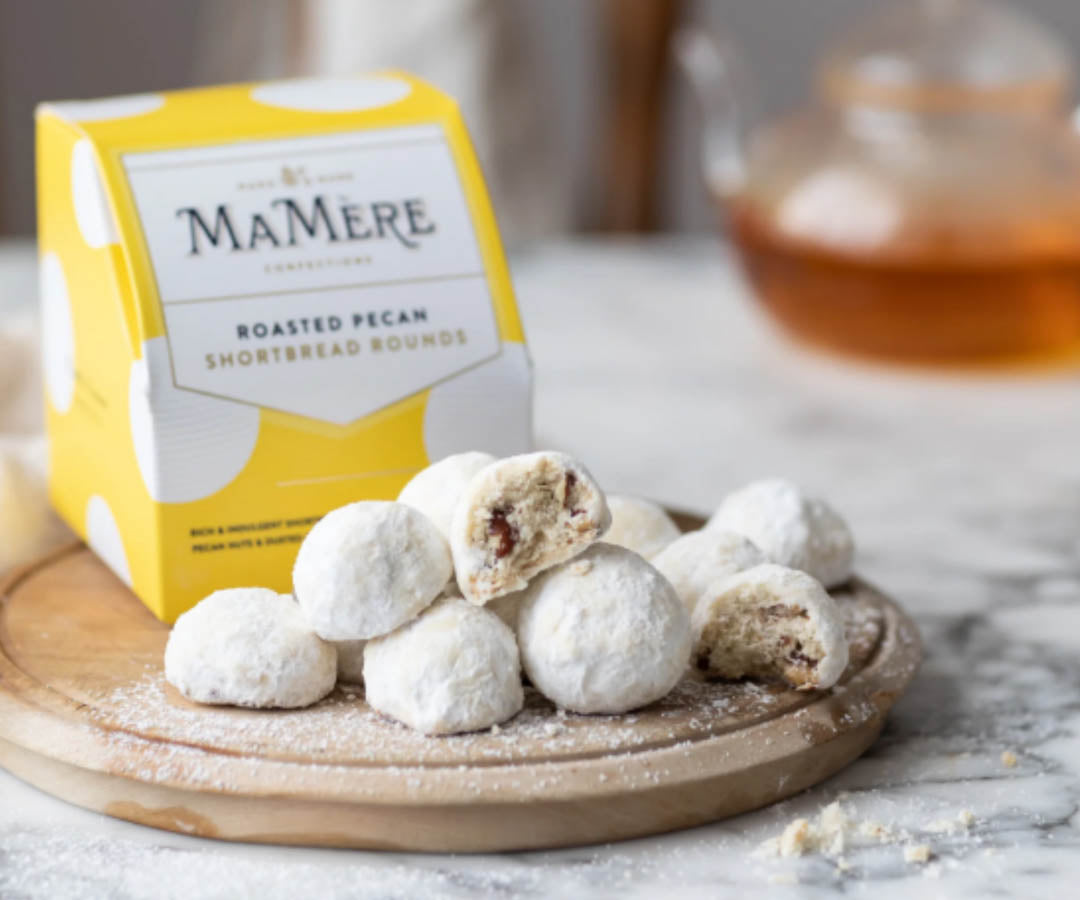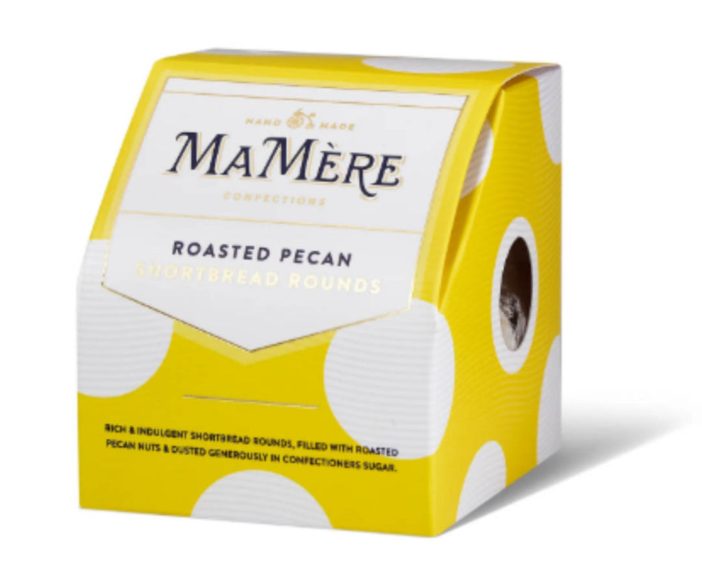 • These Rich and buttery shortbread rounds are the perfect companion to a hot cup of tea and a cool Winter's day. Filled with roasted pecan nuts, and dusted generously in confectioner's sugar they are impossible to resist.
