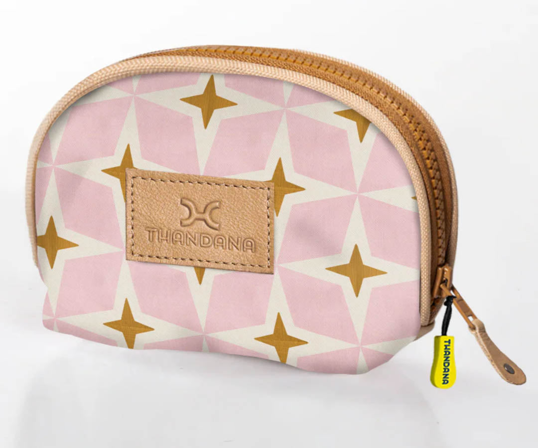 • Inside of the makeup bag is lined with water-resistant Nylon "Thandana" logo lining
