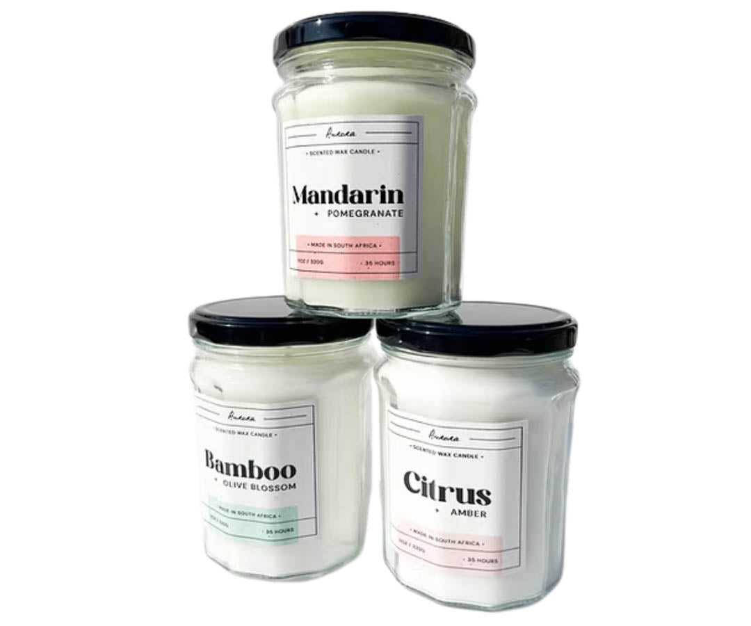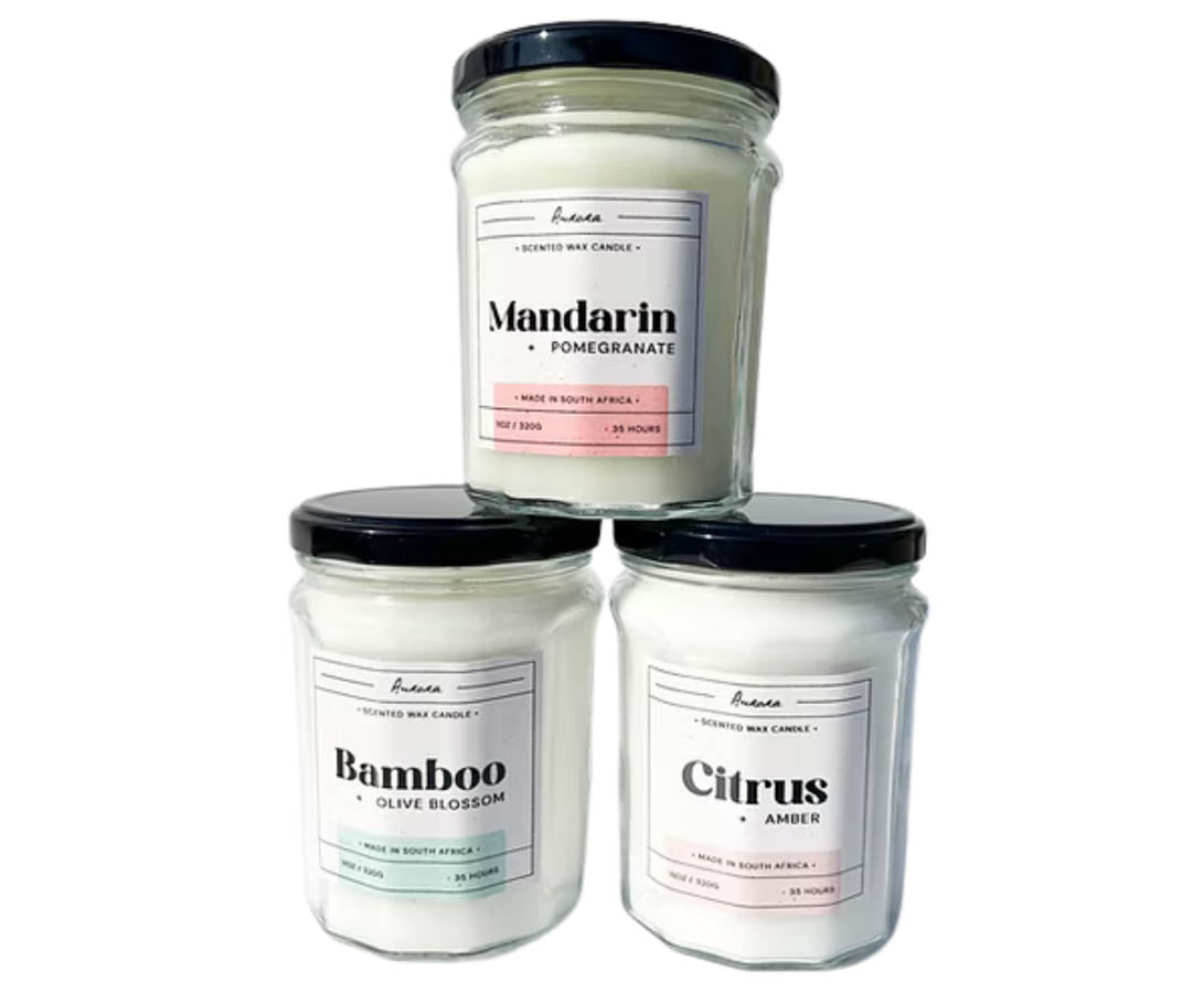 • This new range of container candles will suite any preference. Burn time of 35 hours. Strong and long lasting scent. 320g candle, sold individually.