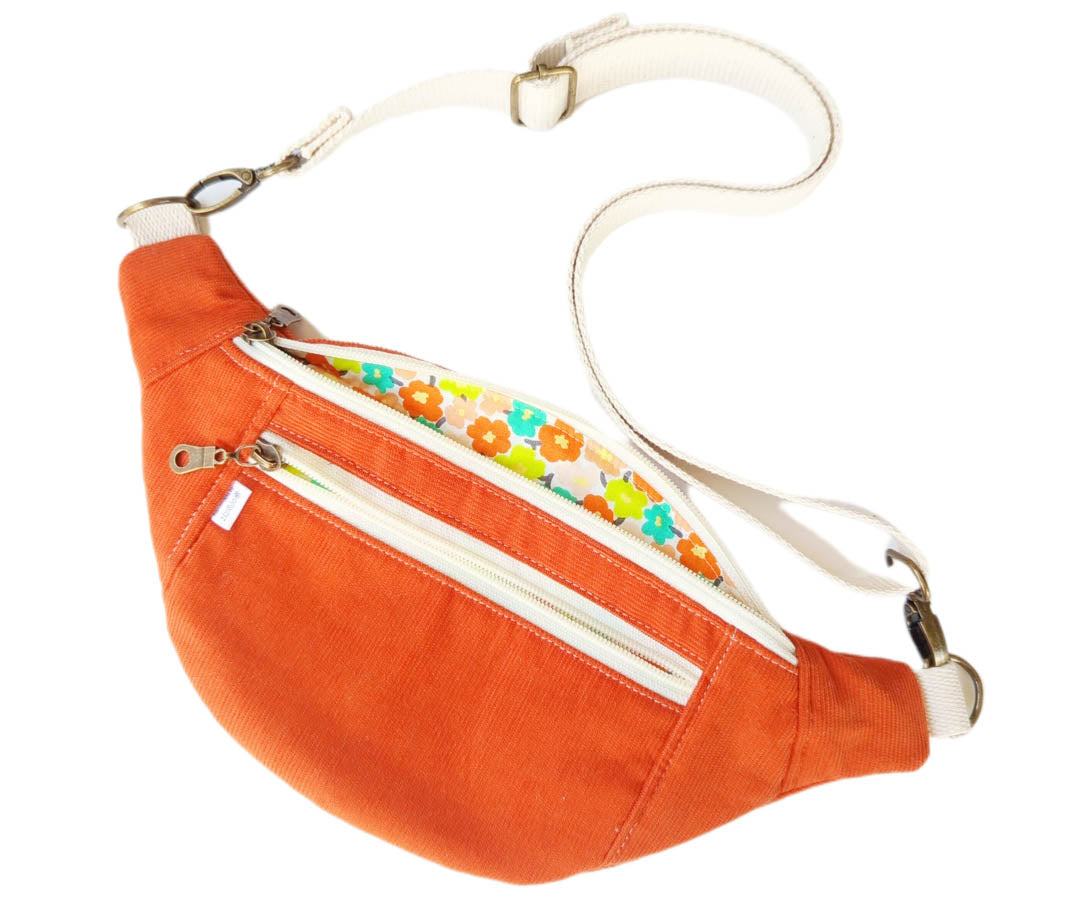• Features include: Can be worn cross body or around the waist. Fully lined with 2 zip pockets. The strap is adjustable with metal hardware and made long for wearing across the body.