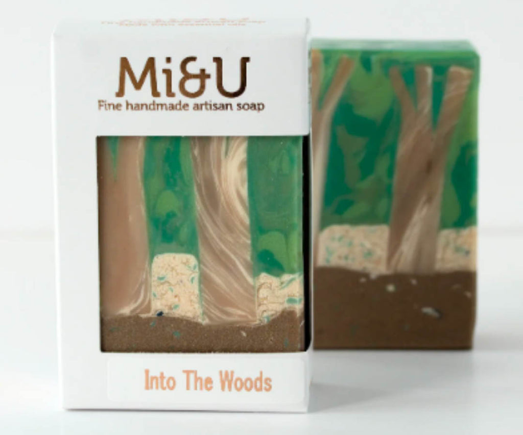 • Made with a luxurious blend of olive oil, coconut oil, and shea butter, this soap produces a creamy, nourishing lather that gently cleanses and deeply hydrates the skin. Thoughtfully crafted with natural ingredients, Into the Woods transforms your daily wash into a sensory forest escape, connecting you with the strength and calm of nature.