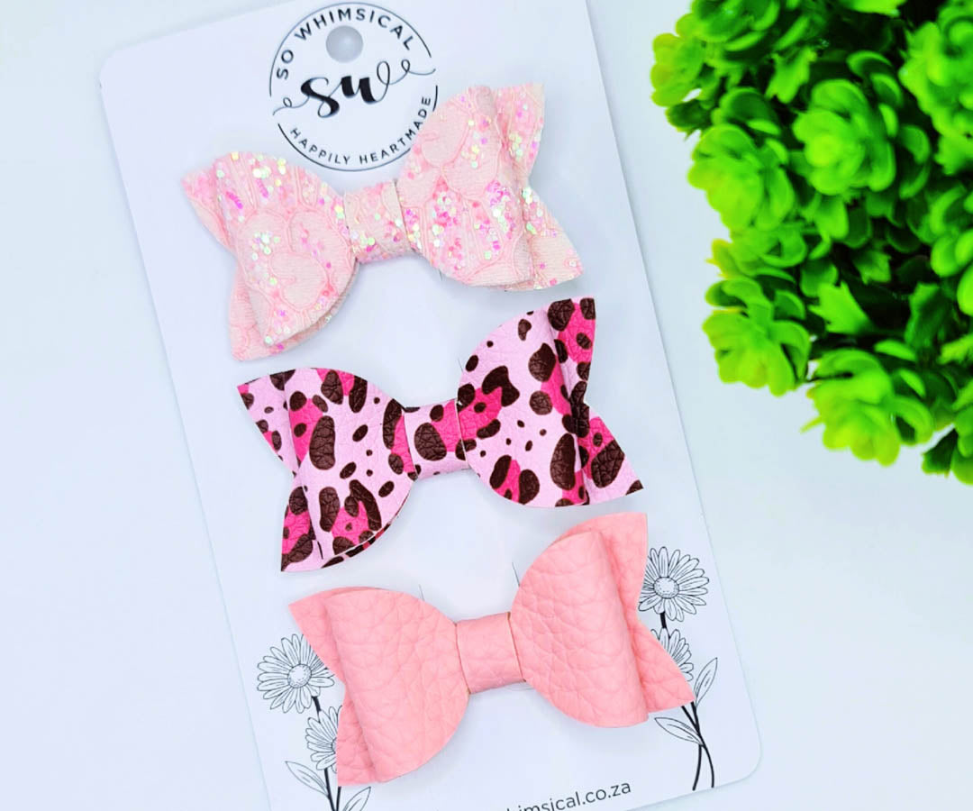 • Each bow is carefully handcrafted. I take great pride in creating each and every bow to perfection, because these are handmade items, they may differ slightly from one another. Each bow also has an alligator clip attached to the back. Please be vigilant of hair accessories with babies and children and never leave them in while sleeping. All our hair accessories are handmade with high quality fabric and vegan leather.