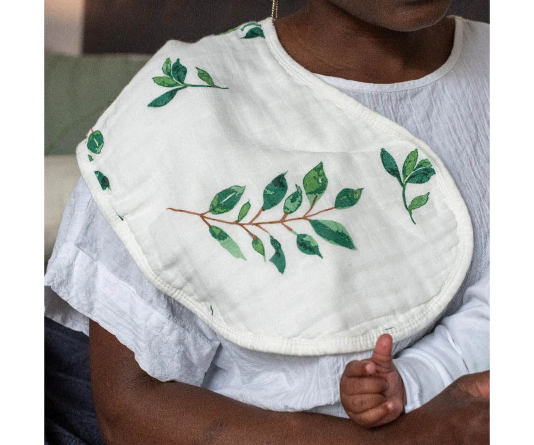 • Made from two layers of 70% bamboo and 30% cotton muslin, the MACCIE 2-in-1 burp cloth + bib set keeps moms and little ones clean from drips, drool, spit-up, and spills. The contoured cloth sits perfectly on mom’s shoulder when burping and easily transforms into a full-coverage bib that drapes over baby’s shoulders with a simple snap of the press stud.