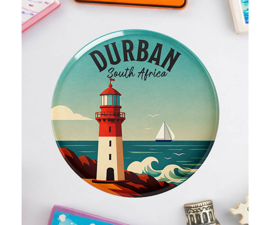 • Single 56mm round fridge magnet packaged in a sleeve.