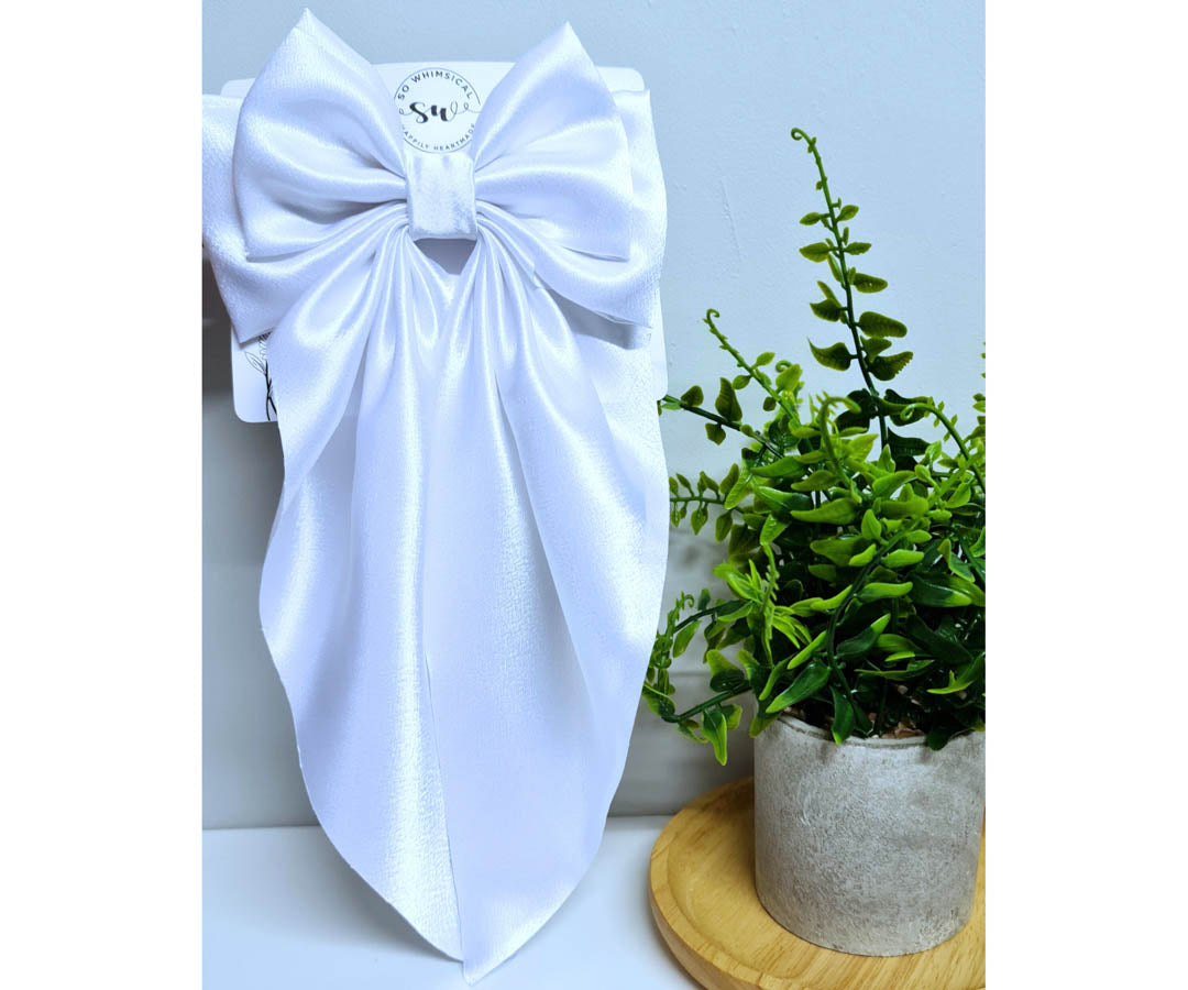 • These long tail fabric bows measure at approximately 11 cm x 11,5 cm. Available with French Clips.