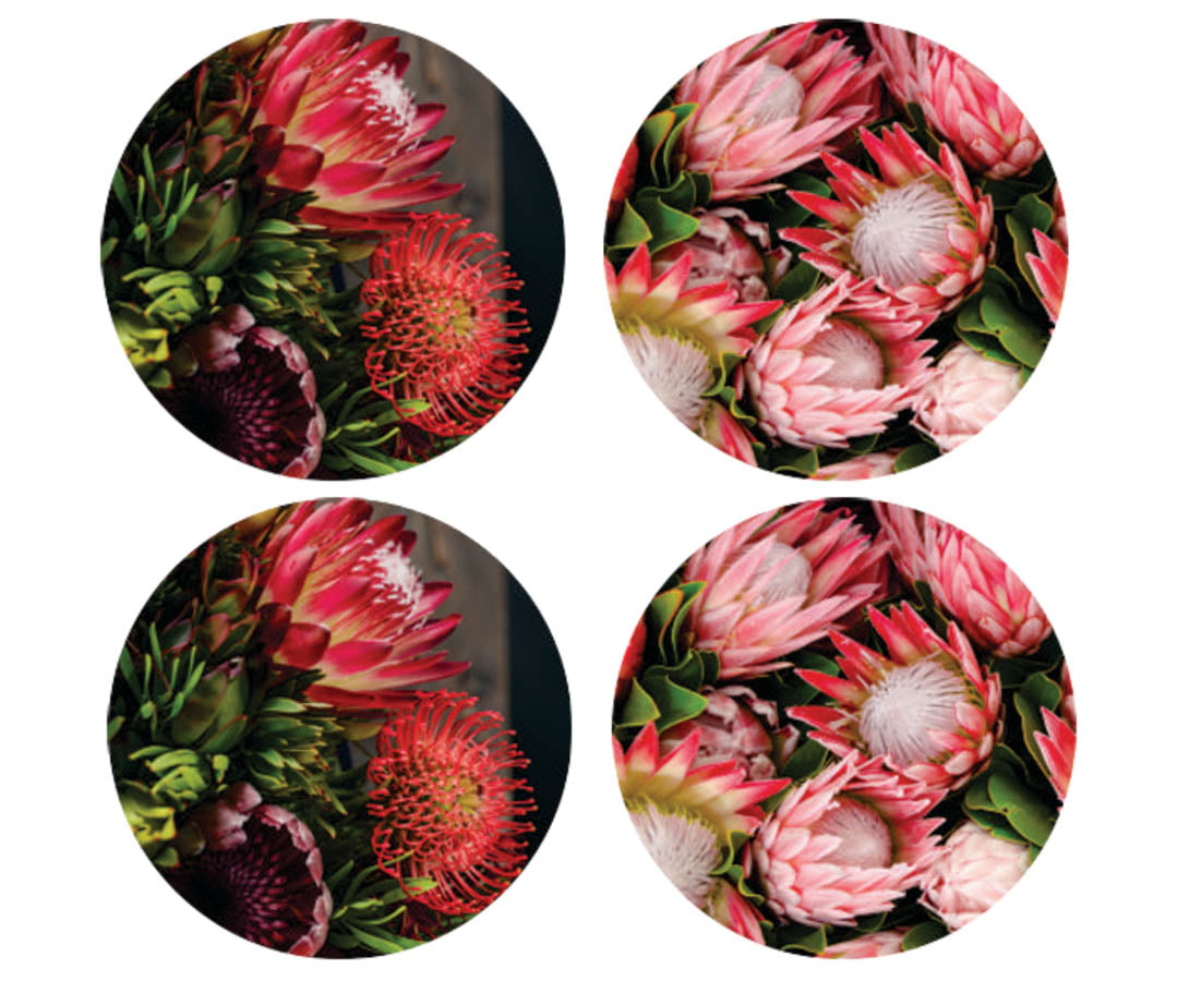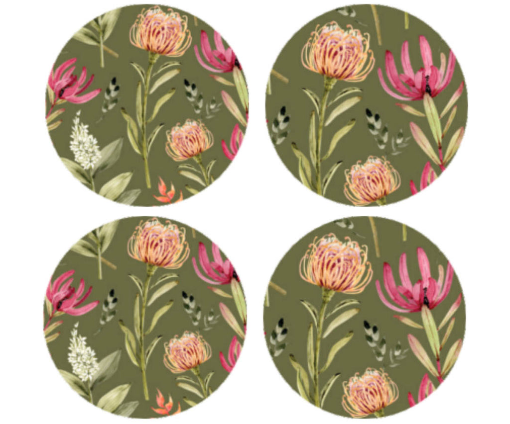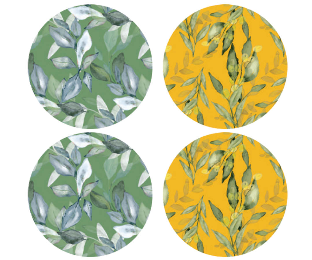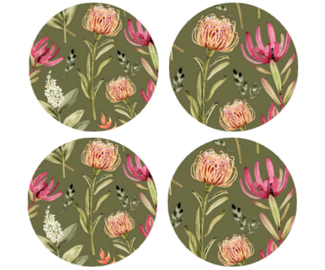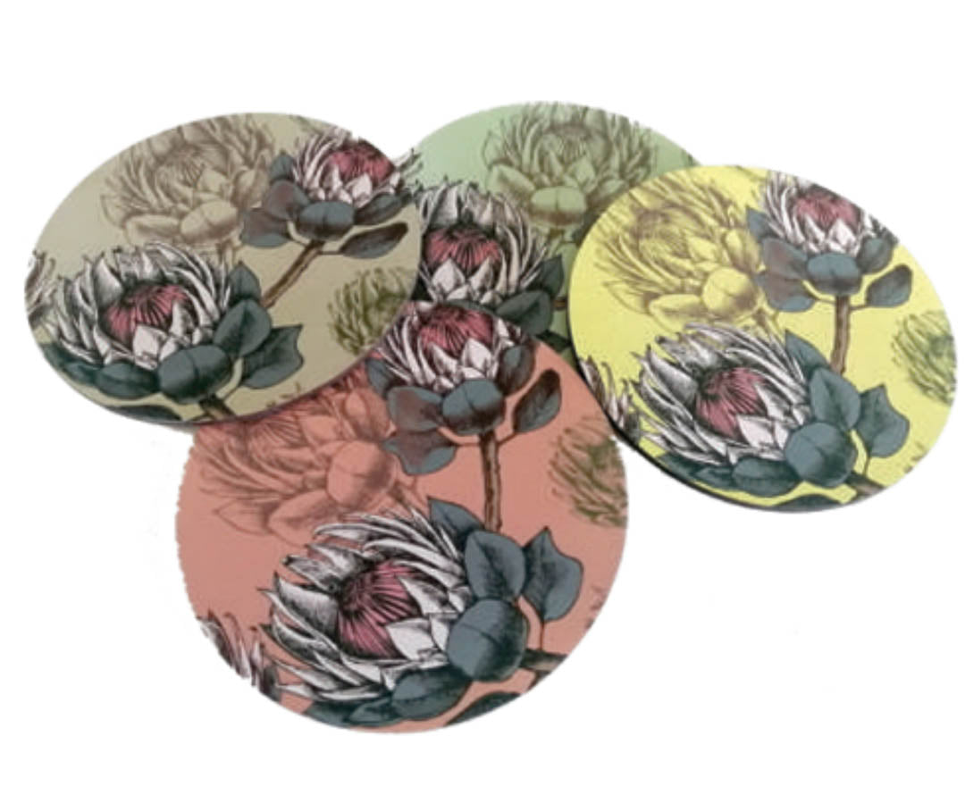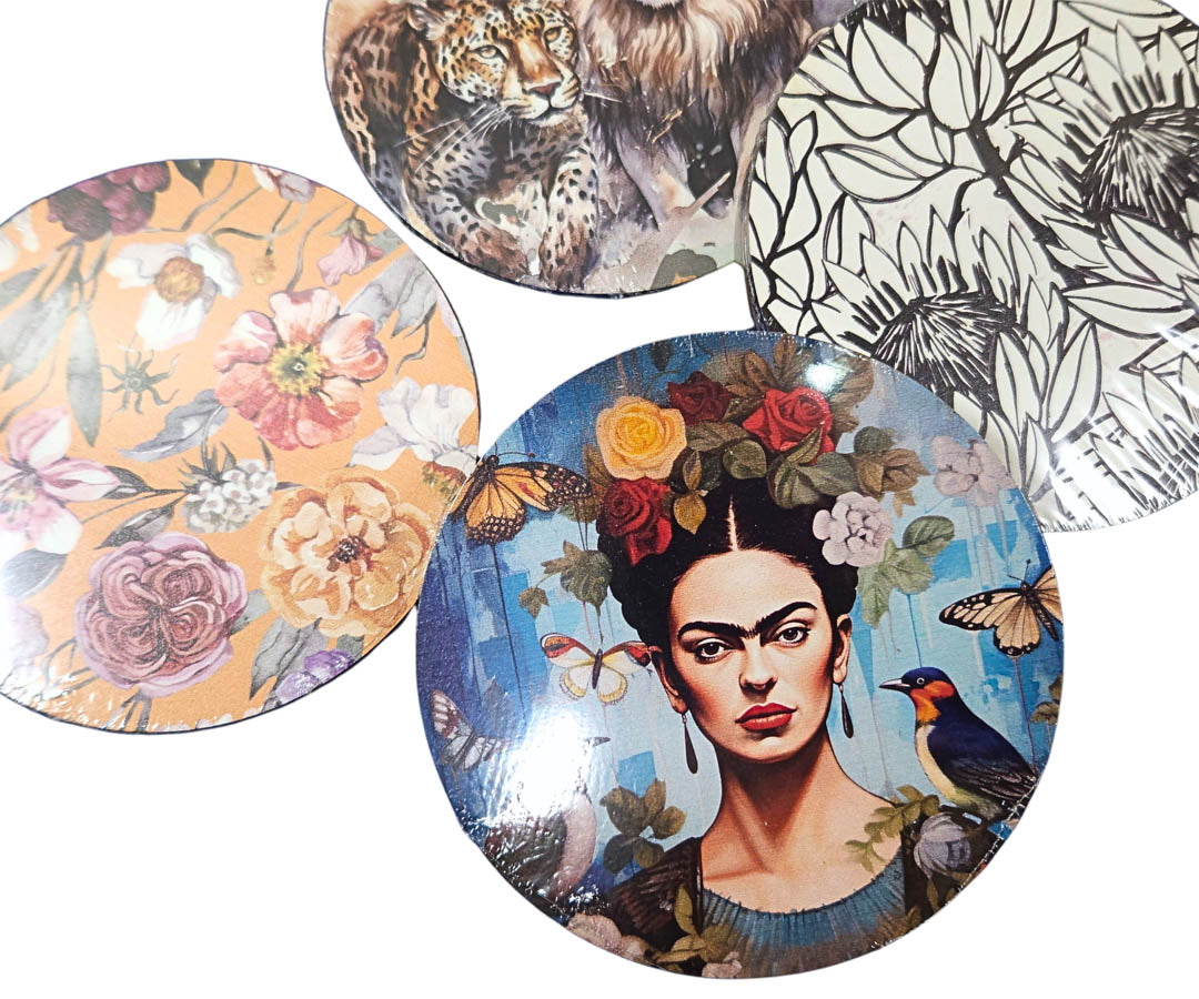• A set of four wooden (3mm MDF) coasters. Easy to wipe clean for daily use. Do not submerge in water.